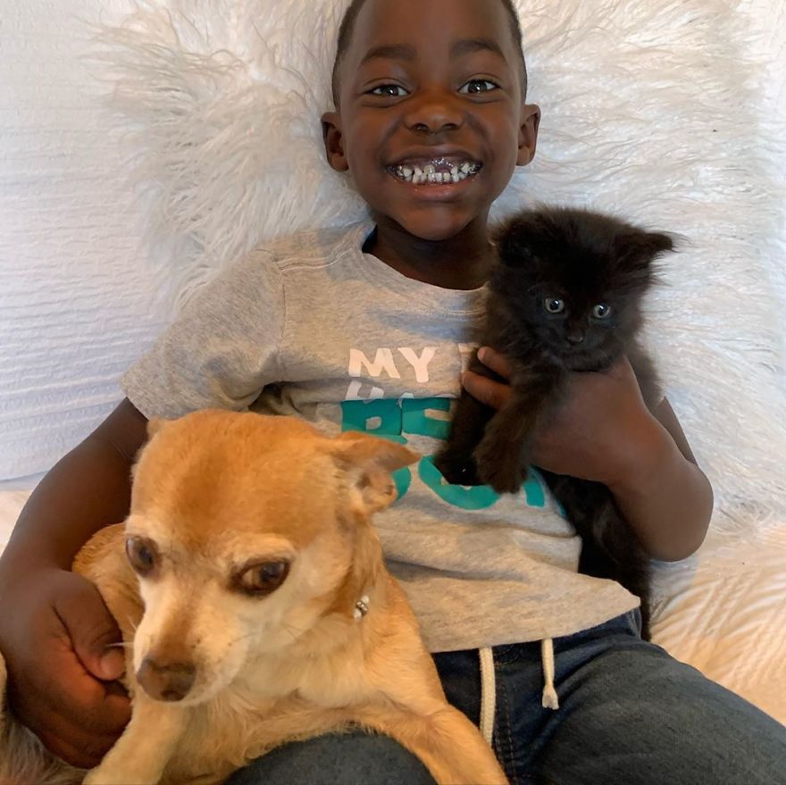 This happened to be the day that marked the two-year anniversary for Holly’s adopted son, Marcelo, which made it doubly special. They took the kitten to get her fully vetted and prepared for a new home, and this is just the beginning of the fluffer’s wholesome life.