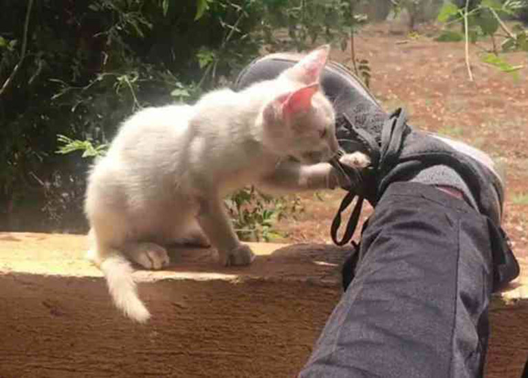 He had never thought of having a pet before but he became smitten but he quickly gained this stray kitty’s trust.