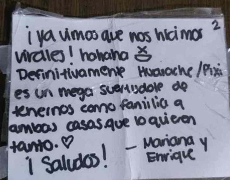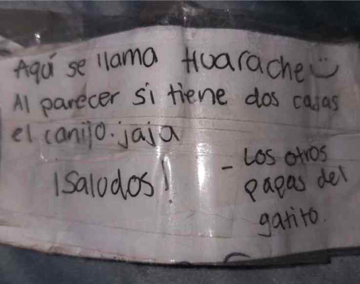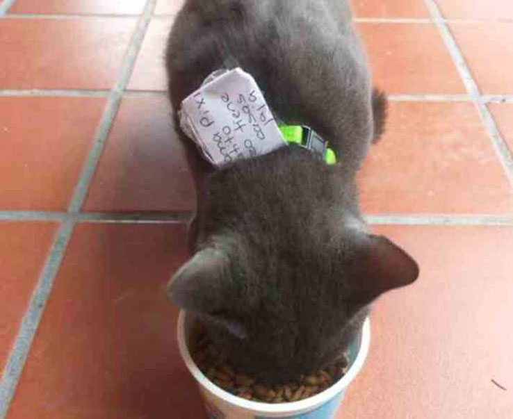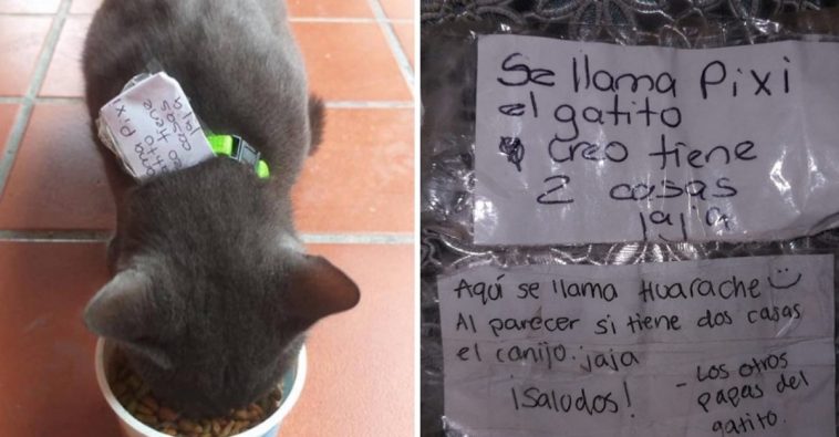 The cat then returned home with a another note in his collar saying: “Here he is called Huarache, it appears that he does have two homes…haha. Greetings!”