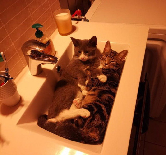 I have a male and a female cat. Usually, they don’t get along very well. The male chases the female and she doesn’t know how to fight back, so she just hides. When they are not fighting, the female cat looks at the male and hisses. But when we are washing the male (which he hates, he screams the whole time), she gets worried walks around the bathroom, and when he is finally free, she starts licking him. Once, he comes back to his senses, they start fighting again.
