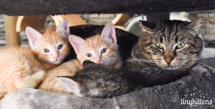 Shelly was looking after him at home, when a small group of kittens arrived to brighten up their lives. As soon as Mason met the babies, he simply fell in love with them.