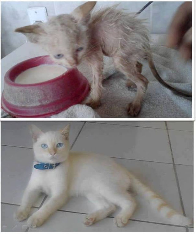 What a poor little kitty! She was so skinny. Now she looks so beautiful.
