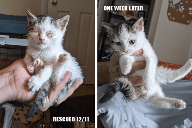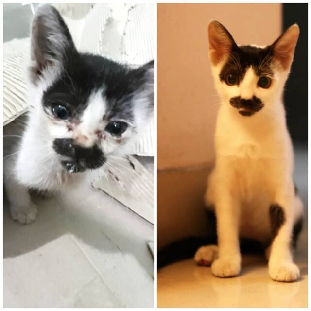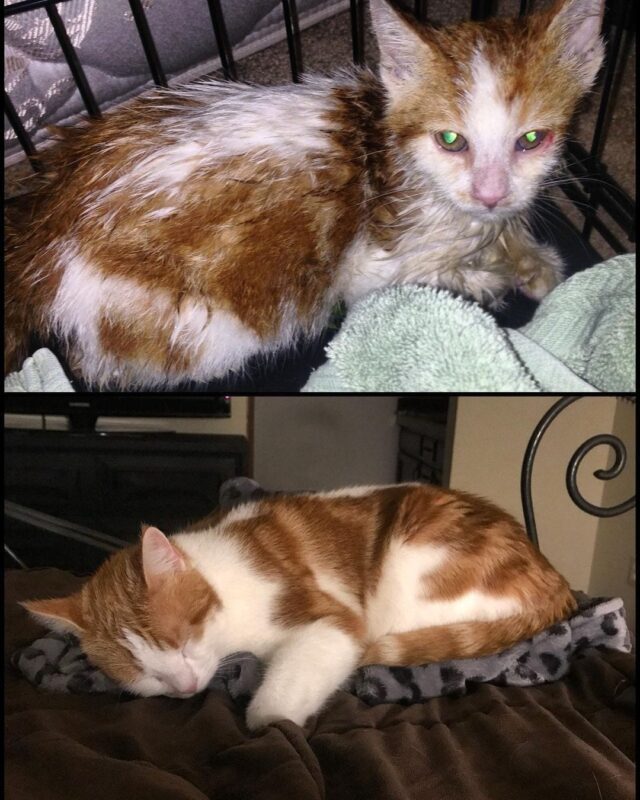 Tiny Martin was once a malnourished cat with an eye infection. And now he’s so happy and healthy-looking. He had a second chance to live in a forever home with such amazing people.