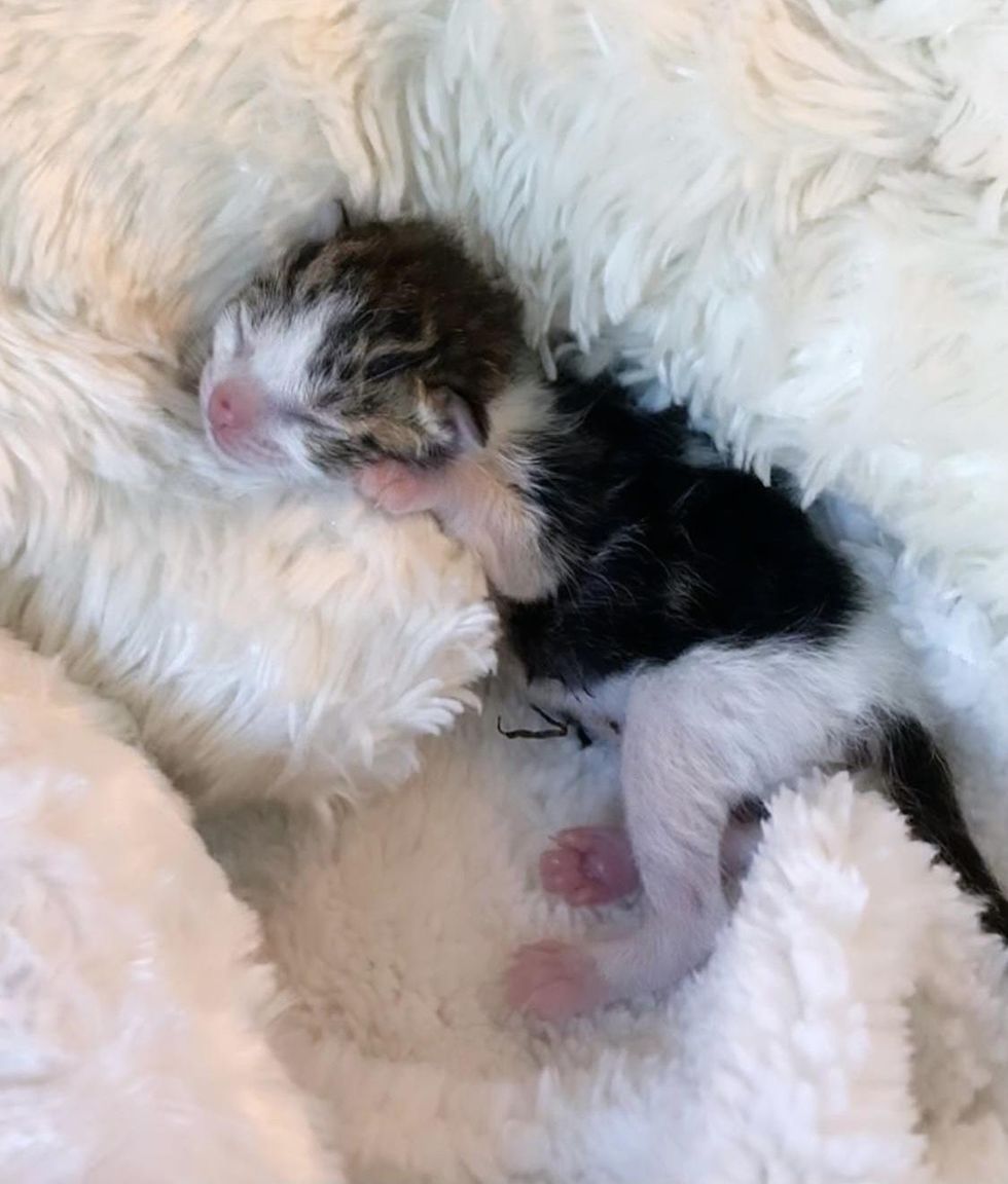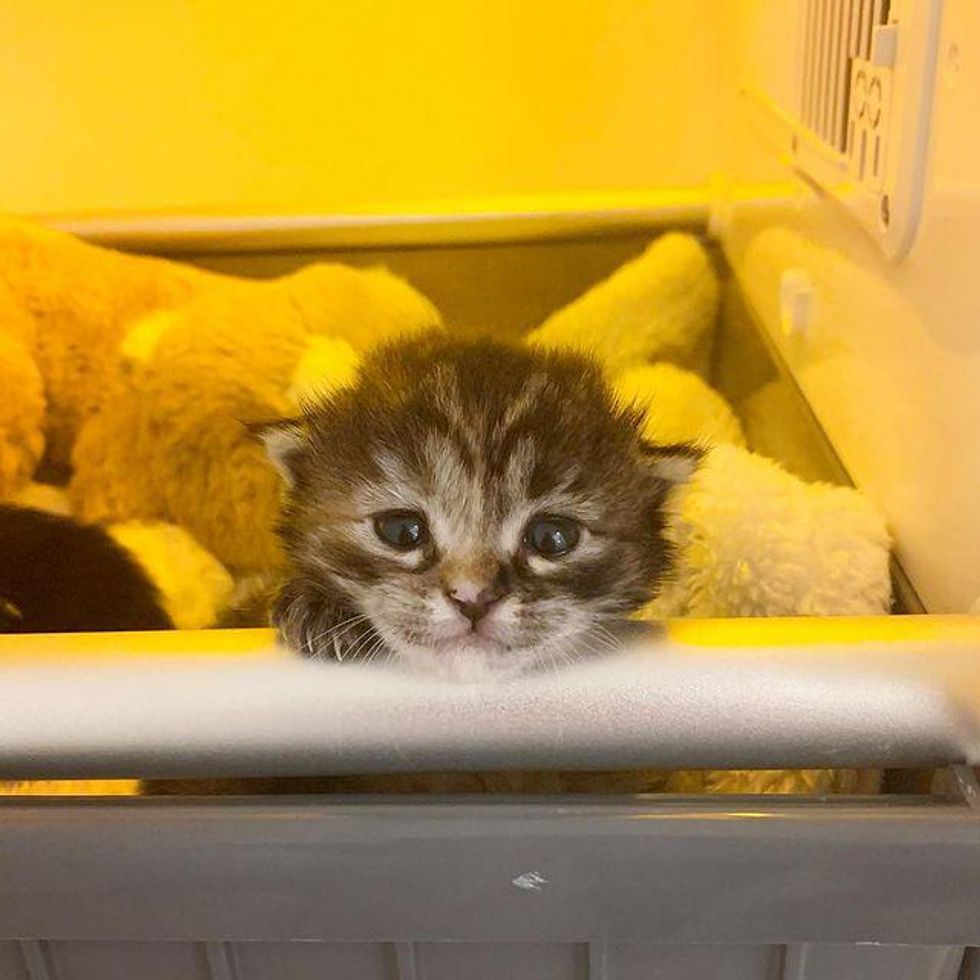 He got the kitten inside, tried to warm him up and reached out for help. Saving One Life, an animal rescue, responded to his plea and immediately arranged a foster family equipped with an incubator.