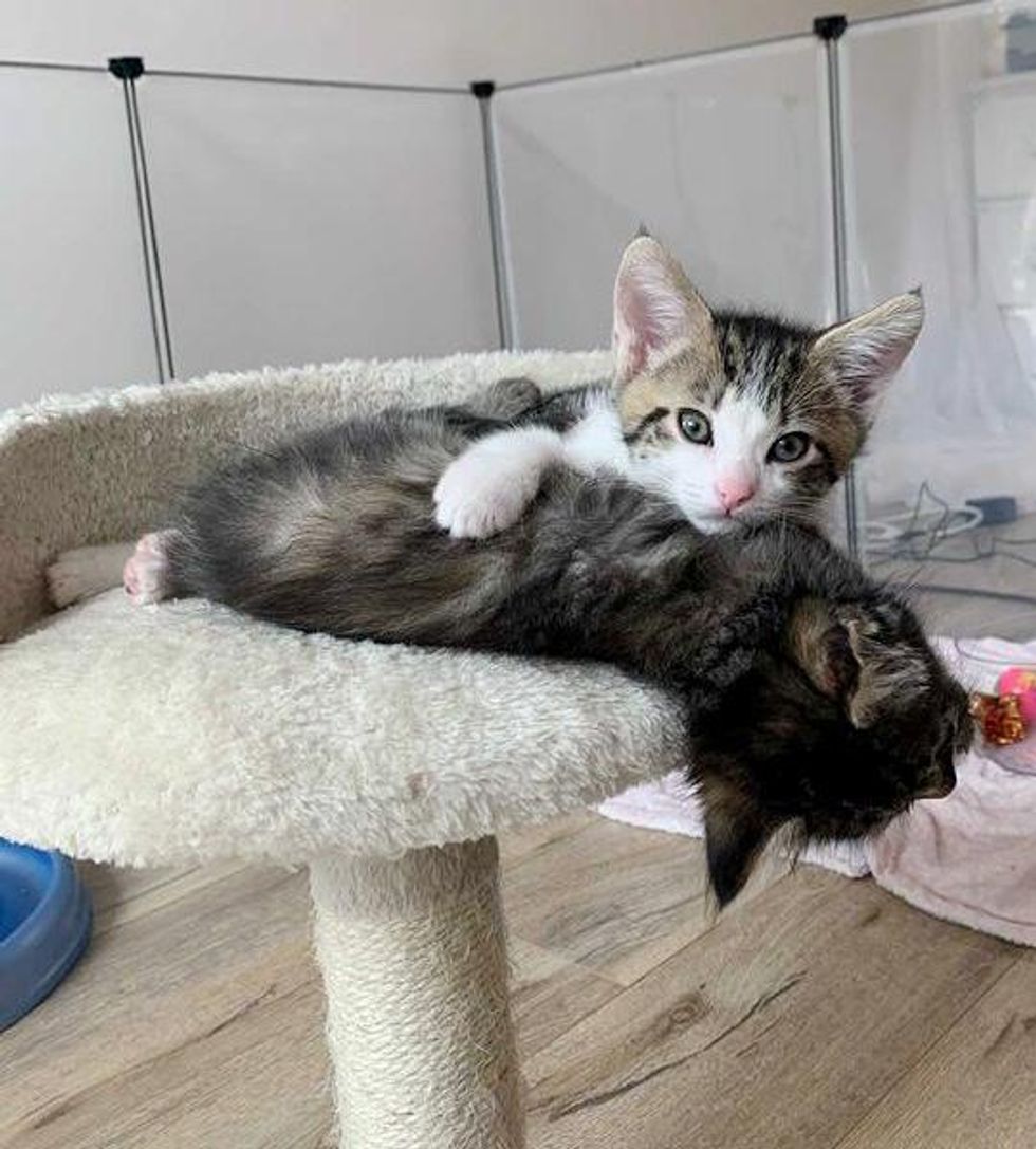 After the two-week quarantine period, they finally had a proper meet-and-greet. Toby was a bit confused at first and didn’t know how to act around other kittens.