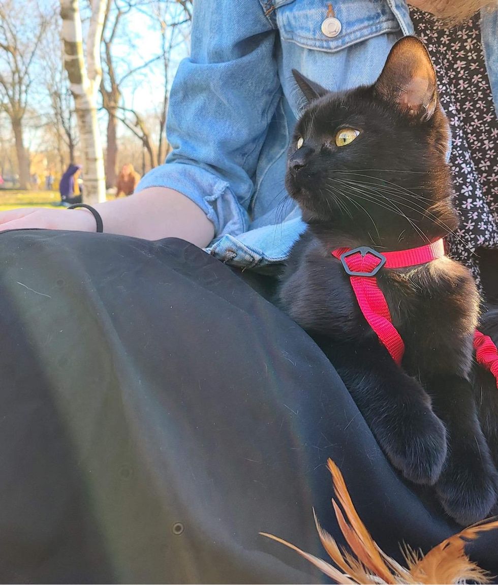 They introduced him to a harness, so they could safely take him for a walk in a nearby park and spend the afternoon together, taking in some fresh air and all the interesting scents around them.