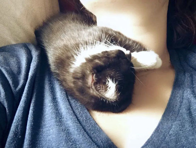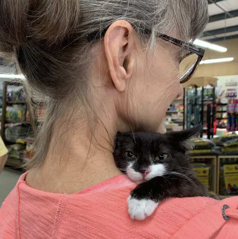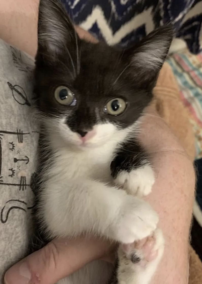 “She’s a very thoughtful kitten who loves to cuddle and converse,” said Rowan. “She loves to be right next to her person for hugs and makes an excellent nap time neck warmer.”