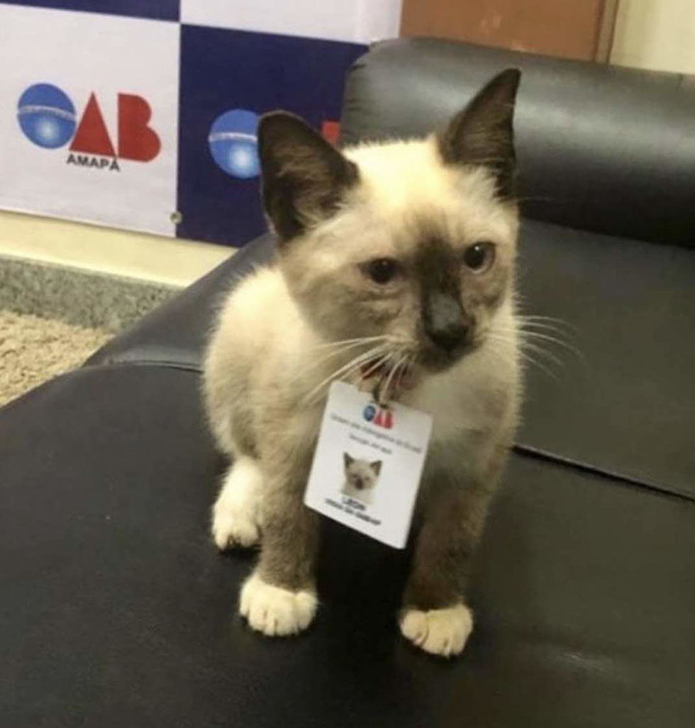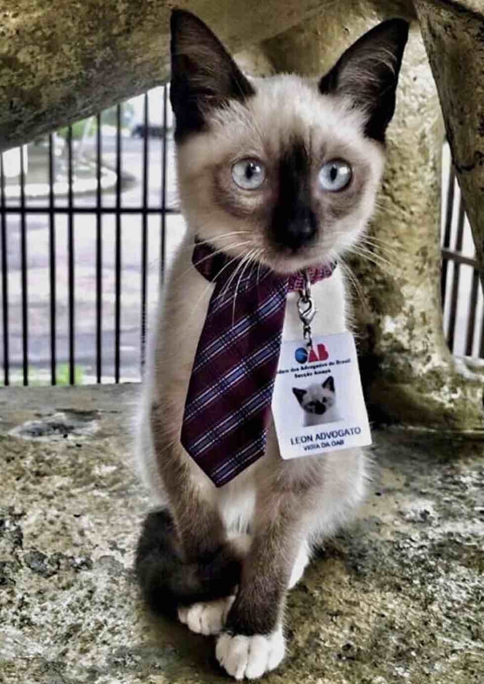 A stray kitten named Leon wandered into the police office Order of Attorneys of Brazil (OAB) in search of shelter during a thunderstorm.