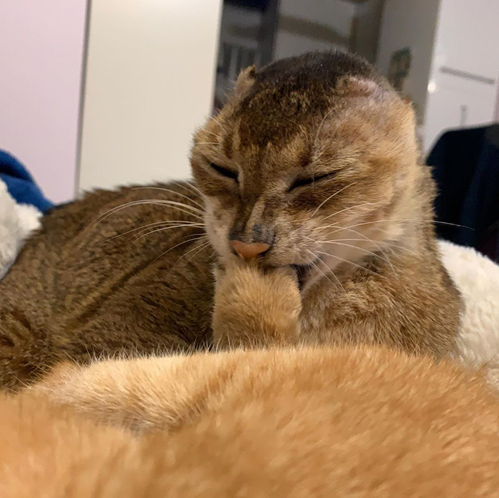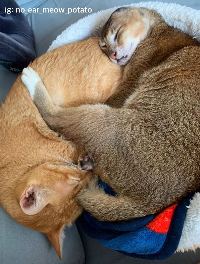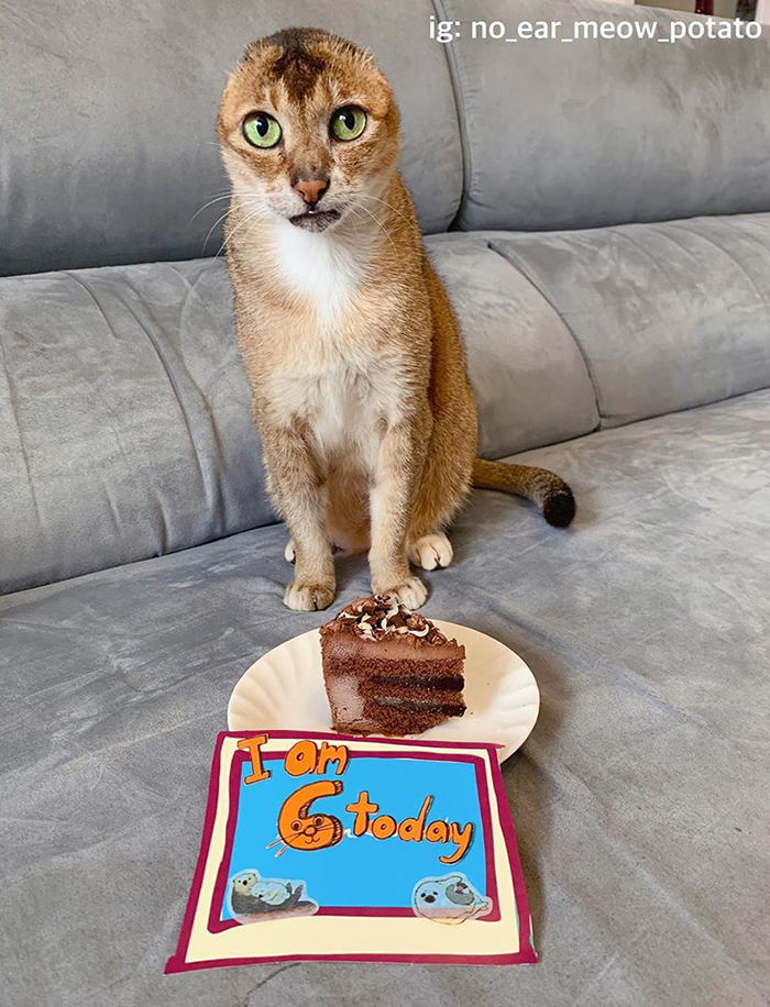 Luckily, Potato is now recovering well and has finally found his forever home (and a new best friend Horlick!). His new owners even write on Instagram that Potato can still hear too.”Potato was a stray cat, so no one knows when he was born or how old he is,” his owners write on Instagram. But they are guessing that the handsome boy is around 6 years old. As his owners adopted him on 25 April 2019, they’re now celebrating the day as Potato’s birthday. Scroll down below to see the photos of the most handsome earless boy and vote for the photos that you liked the most!