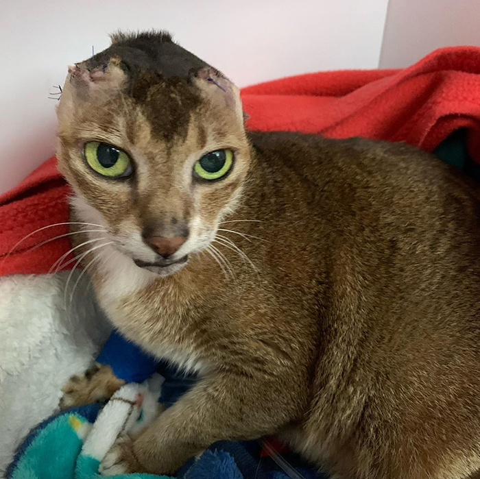 Meet Potato—the most adorable and handsome earless cat that you’ve ever seen. Before getting rescued by a local shelter, the dapper boy was a stray cat living on the city streets in China. Animal rescuers found sick and abandoned Potato 2 years ago and the poor fella had serious ceruminous adenoma in his ear canals and on his ear flaps. The vets treated him to remove the adenoma, but, unfortunately, it returned. Afterward, the vet advised removing his canals and flaps to prevent the disease from reoccurring.