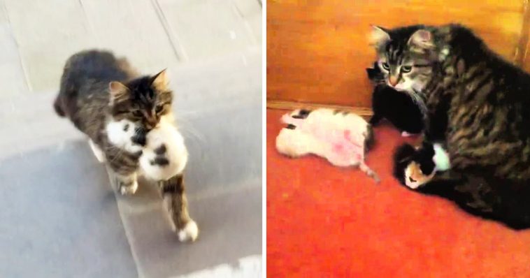 Here is a heart-melting video of a protective cat mama in Istanbul, Turkey who heads to a mosque to nurture her offsprings. In the video, the cat carries one of them from the outside in very smoothly as if she had done it a million times before. And when she finally reaches her destination, it turns out that the sweet mommy has finished taking the whole litter of four kittens there! This cat family looks so adorable together.