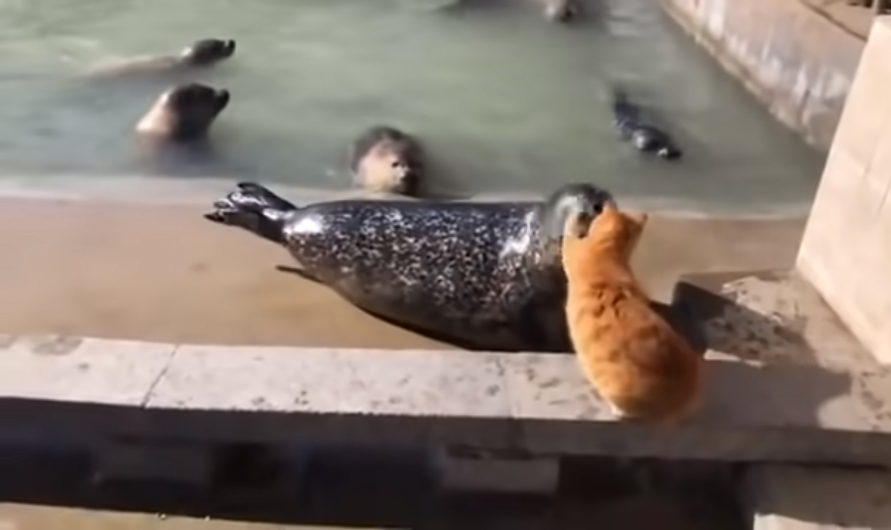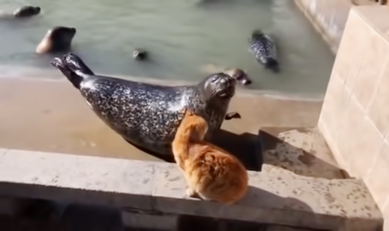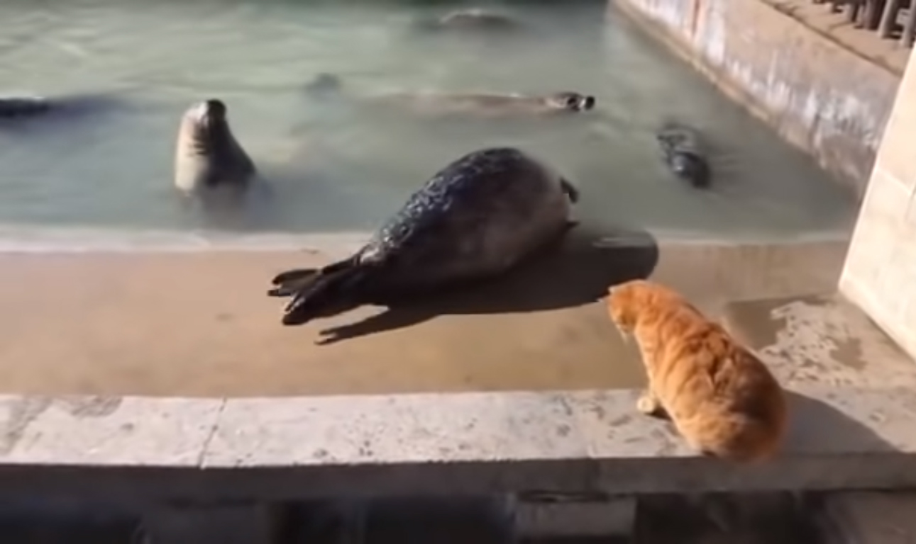 The funny incident starts when the seal tries to communicate with the cat. But instead of meowing, he simply chooses to use his own language – which the cat clearly doesn’t understand. It’s hard to say if he wants to make friends with or provoke that orange kitty, but based on that attitude, there’s a good chance he just wants to mess around.