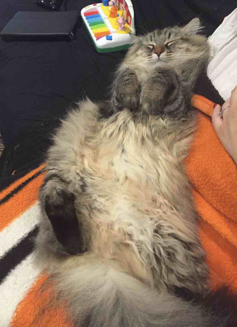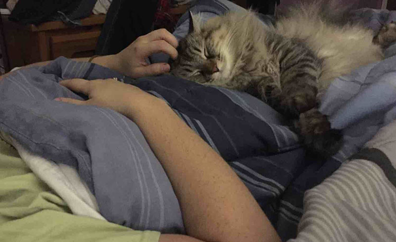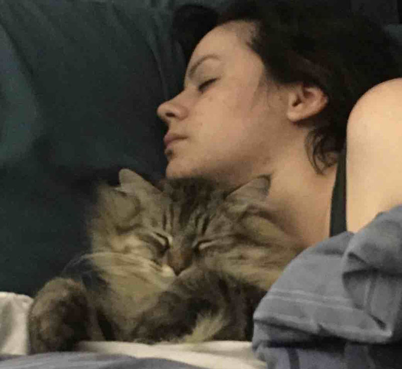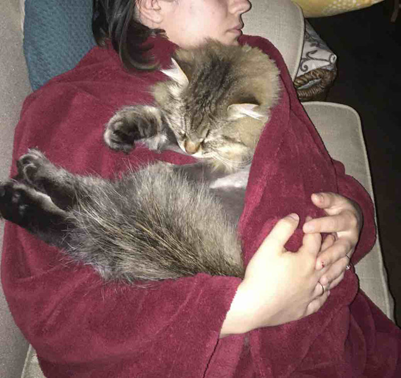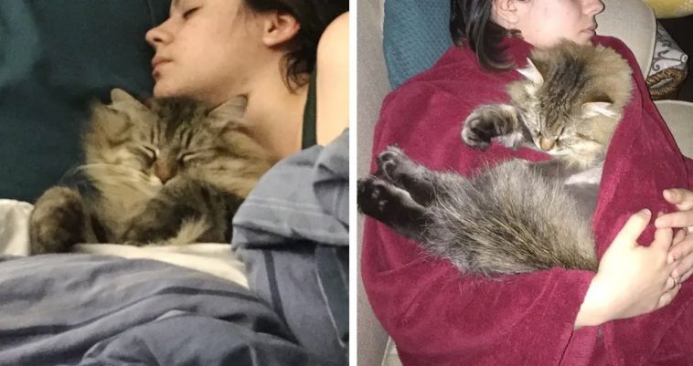 After a few days and Lisa’s attempts to approach the feline, Max got super close to her. Then things got more peculiar when Max started to snuggle with her when she slept.