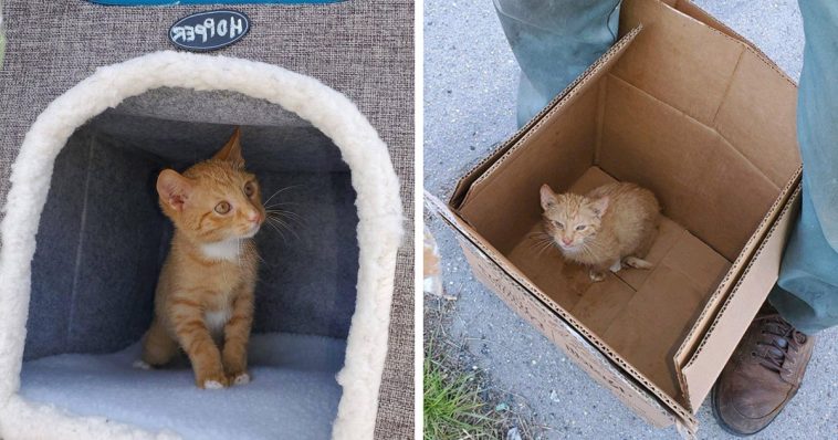 The kitten was very frightened and cautious at first and didn’t want to dwell in the box for too long