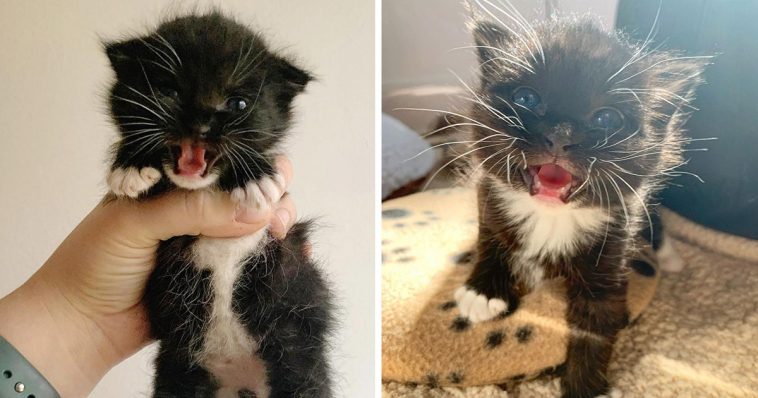 A tiny kitten with a big voice trilled her way into the hearts of a family.