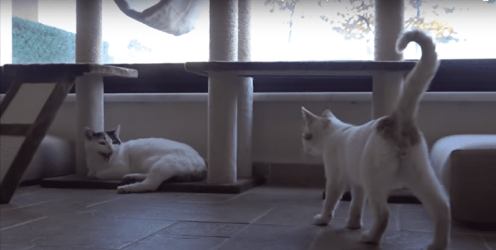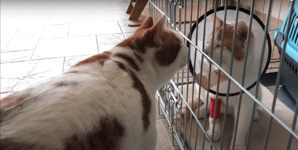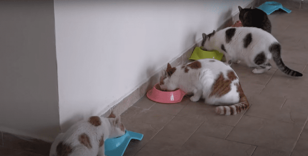 Walter did hope that everything would be going well like this. But one day, an unfortunate incident happened. When trying to eat the meals of other cats, the kitten got scratched on his left eye again. Another corneal ulcer occurred on the same eye, and even exactly on the same spot as the previous one. Walter decided to take the treatment for the cat at home, instead of going to the vet clinic. She didn’t want the friendship between Pamuk and the kitten to be impacted due to the clinic smell. After 10 days, the little cat was in a better condition with a much smaller scar on his eye. They celebrated his eye recovery with a full canned pate for everyone.