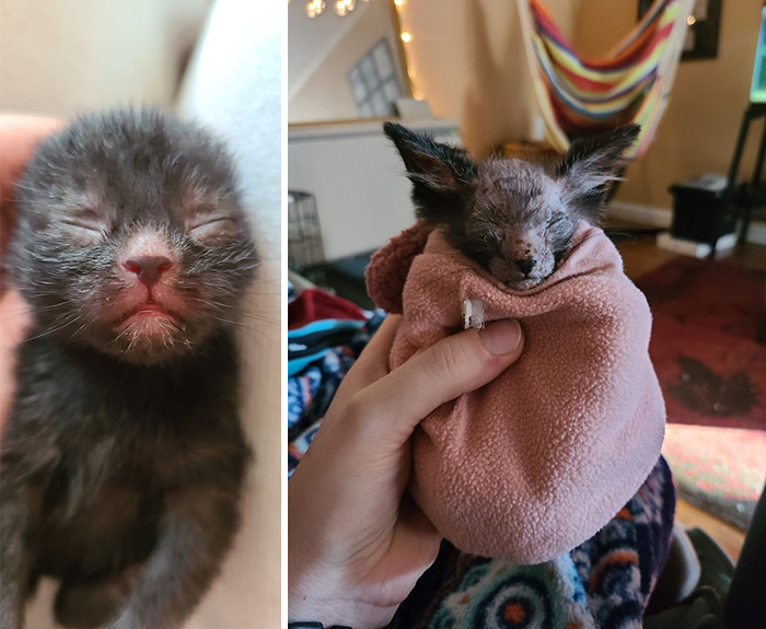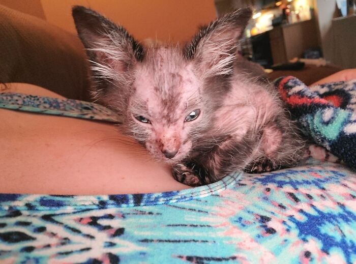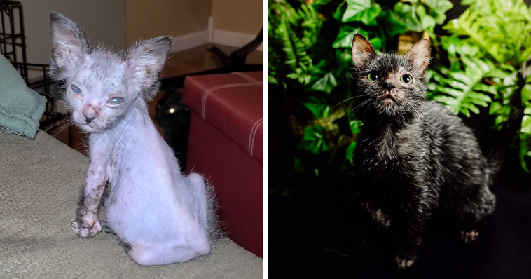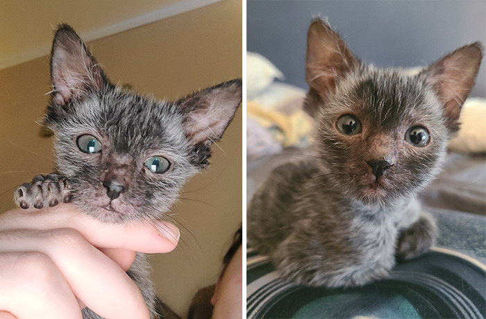 Recently an account named Graciewolfcat posted a video of a kitten that their fostered cat had. The kitten stood out from the rest because of her bald spots and strange fur patterns. The kitten was born with a rare natural mutation. Cats with this mutation are called Lykoi or Wolfcats. The video got over 6 million views and over 1 million likes.