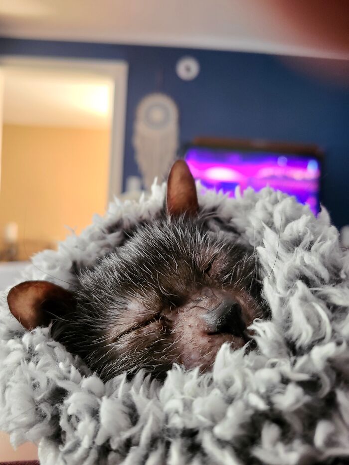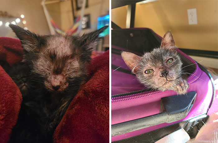 “I came across a cat that looked similar but I didn’t think much of it. As she grew, I tried to Google different kinds of cats with black and white peppered hair and bald faces, and eventually, I figured out she was indeed a wolfcat, or more appropriately named, a Lykoi.”