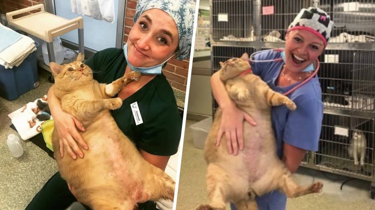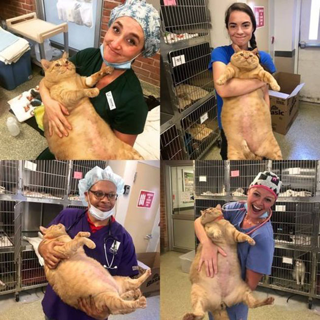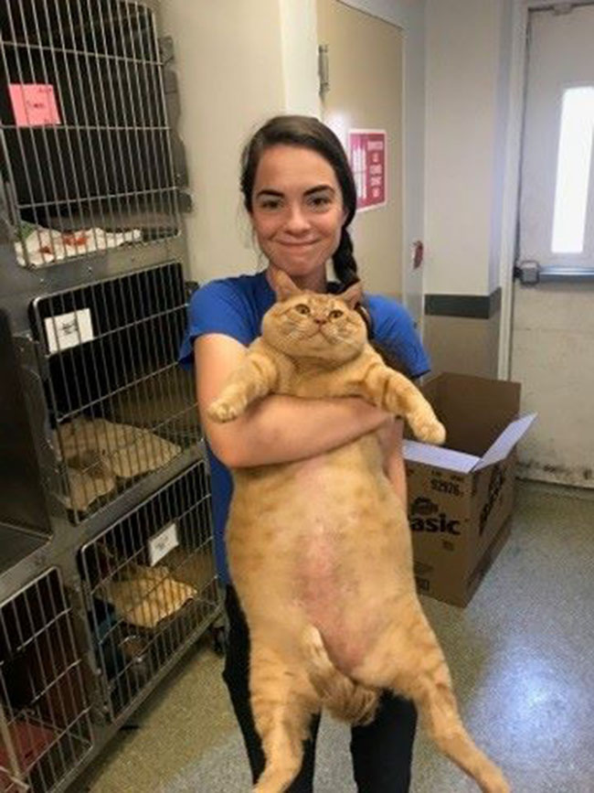 The orange tabby arrived last week after his owner moved to an assisted living facility that does not allow pets. Staff figured the man was exaggerating when he estimated his cat’s weight at 40 pounds – until they met the 6-year-old meatball!