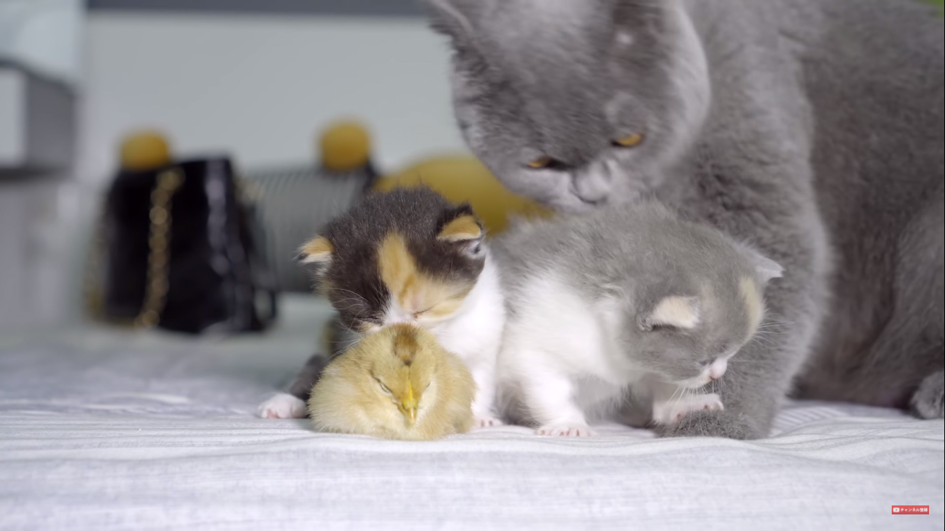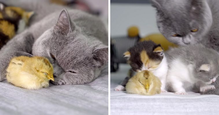 If you are looking for some cuteness and sweetness to comfort your heart during this uncertain period, this video is right up your street. You may have seen a mama cat snuggling with her kittens before, but have you ever witnessed a mama cat snuggling with her kittens and a chick? Yes, you read that right. Every baby needs a loving mama, and baby chickens are no exception. So when this tiny chick is all alone and desperately needs some care and love, he turns to his family’s cat and her newborn kittens for help.