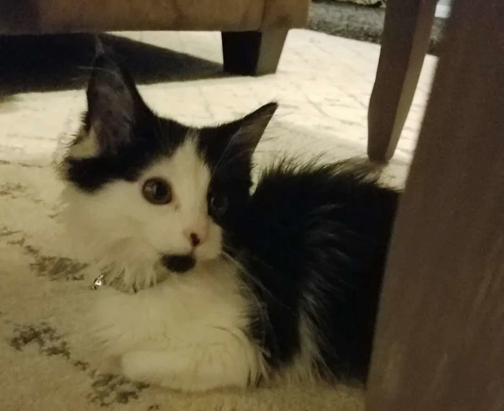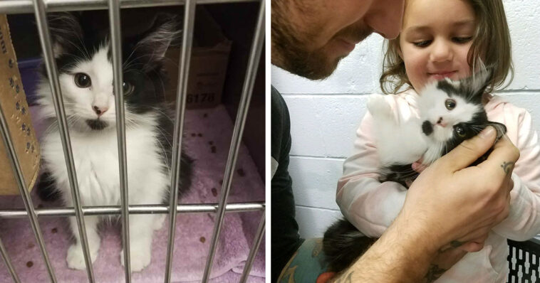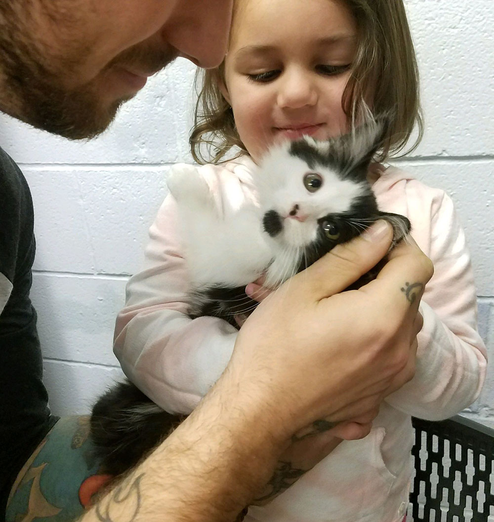 As they walked through the kennels, a little black and white kitten called Luna caught their eyes.