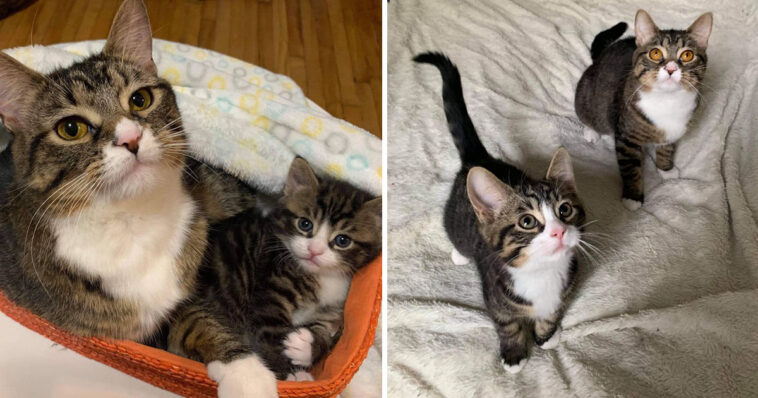 A tabby cat got back to her beloved kitten and hasn’t left his side since. They share an adorable bond.