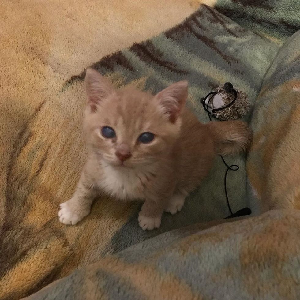 But what he lacks in size he makes up for in personality and he quickly bonded with the other animals in the house: Bella the dog and Aslan the fellow feline.