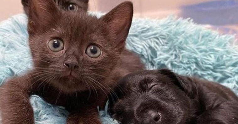 “The kittens are two weeks ahead of the puppies developmentally which makes them a perfect match for the time being.”