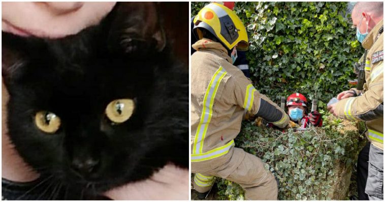 Thankfully, the cat was still alive, even after days trapped in the well. While the well contained a foot of water, she survived by hanging on to a ledge.