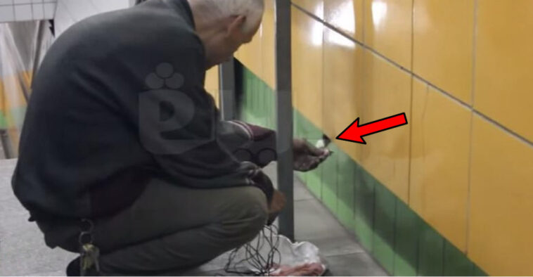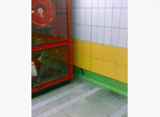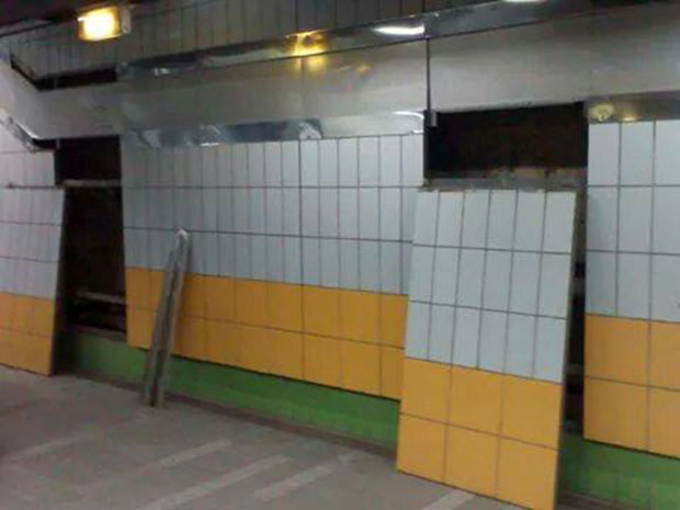 You can see Biso’s tail hanging from a small opening in the wall. Breaking the wall is not that simple since the station is public property. Several animal rights activists decided to put pressure on the employees of the metro station to free Biso. Eventually, workers removed parts of the wall so that Biso could come out.