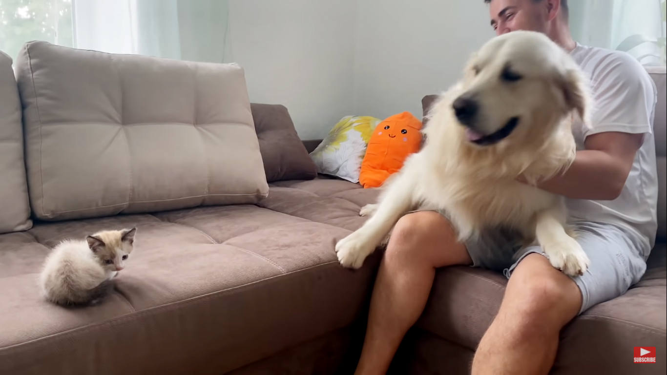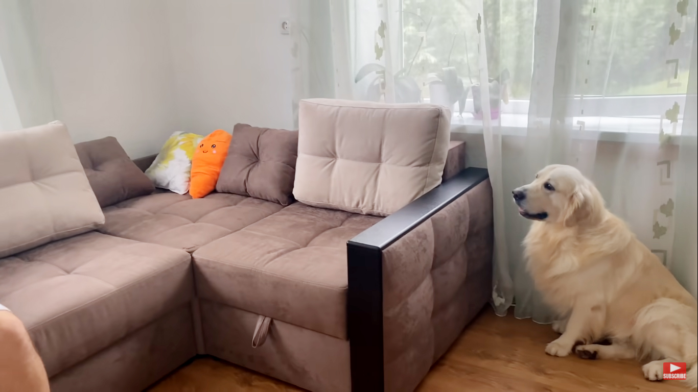 Their first meeting wasn’t exactly amusing. When Bailey’s owner brought Simon home, the poor golden retriever was so frightened that she jumped out of the couch in the blink of an eye, trying hard to hide herself. Such a funny girl!