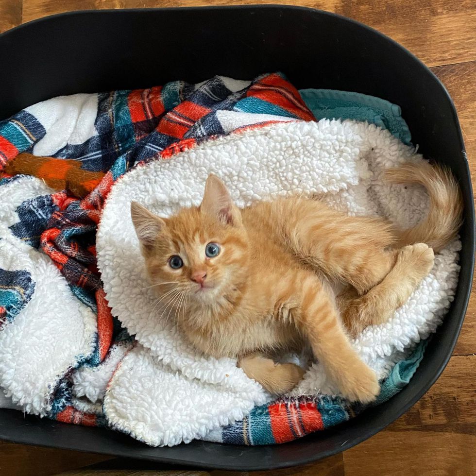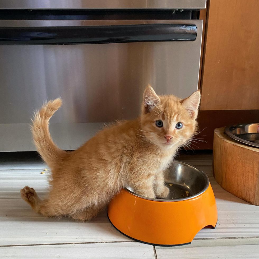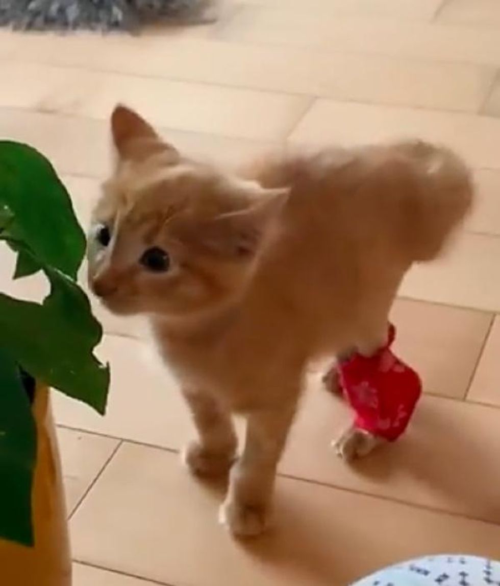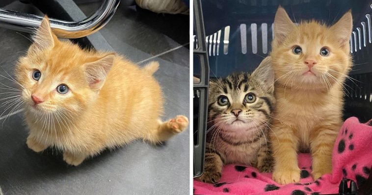 Rubbix, an orange kitten, was born with a pair of twisted back legs. A few weeks ago, he and his sister, Boo, were brought to Chatons Orphelins Montréal, a cat rescue in Montreal, Canada, for a chance at a better life.