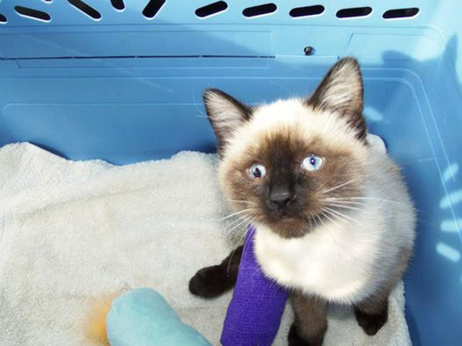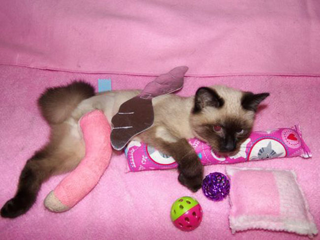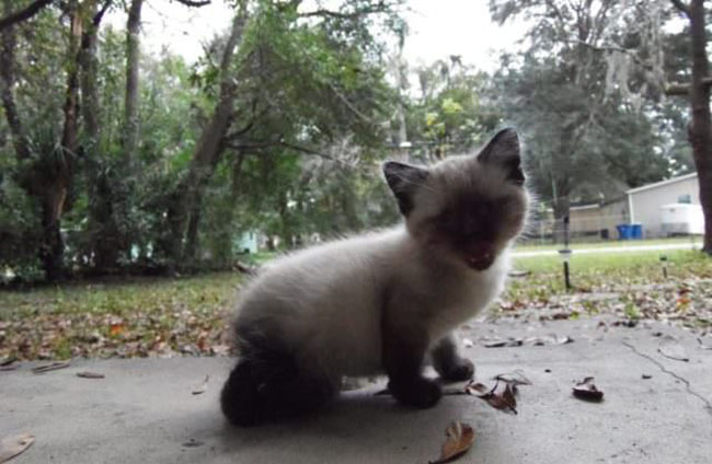 When Carmen’s vet examined the kitty she received the shocking news that not only had the 5-week-old Seal Point been born with severe deformations of her rear limbs; she was also blind.