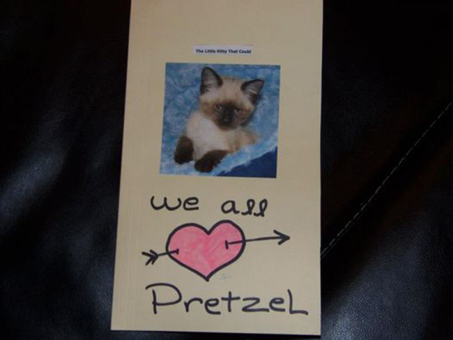 Inspired by Pretzel’s strength of spirit, Carmen started the Facebook page, The Little Kitty That Could and began sharing stories, updates and photos. To her surprise, people from all over the world sent messages of support and donated money to help with mounting veterinary expenses.