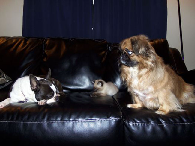 She is living the Florida good life with her mom and dad, 2 human siblings and 2 canine sisters. Shirley the Pekingese is also blind and doesn’t have much use for the boisterous kitten, but Cici the Boston Terrier is Pretzel’s best pal!