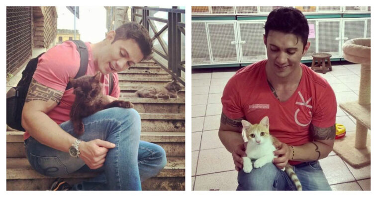 This man has a huge love for cats, especially homeless kittens. When he travels, he always makes it a point to search for stray cats and show them some love.