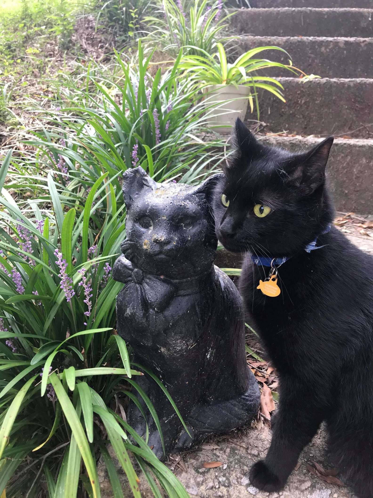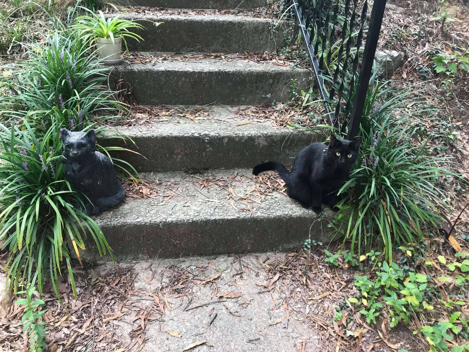 Jenny Salzer was browsing on Goodwill when she came across a statue of a black cat. She was surprised as the statue looked like her cat Cosmo. For this reason, she bought the cat statue and decided to place it on the steps in front of her house.