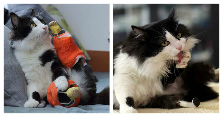 This is the story of Pooh. A cat who suffered an injury, and how he got injured is a mystery. Luckily, a very nice woman took the cat to a clinic for evaluation. The cats injuries were very serious, and the possibility of euthanization was high. But, the doctor at the clinic decided to go above and beyond for his survival. His creativity saved the cat, and now Pooh has a second chance at life.