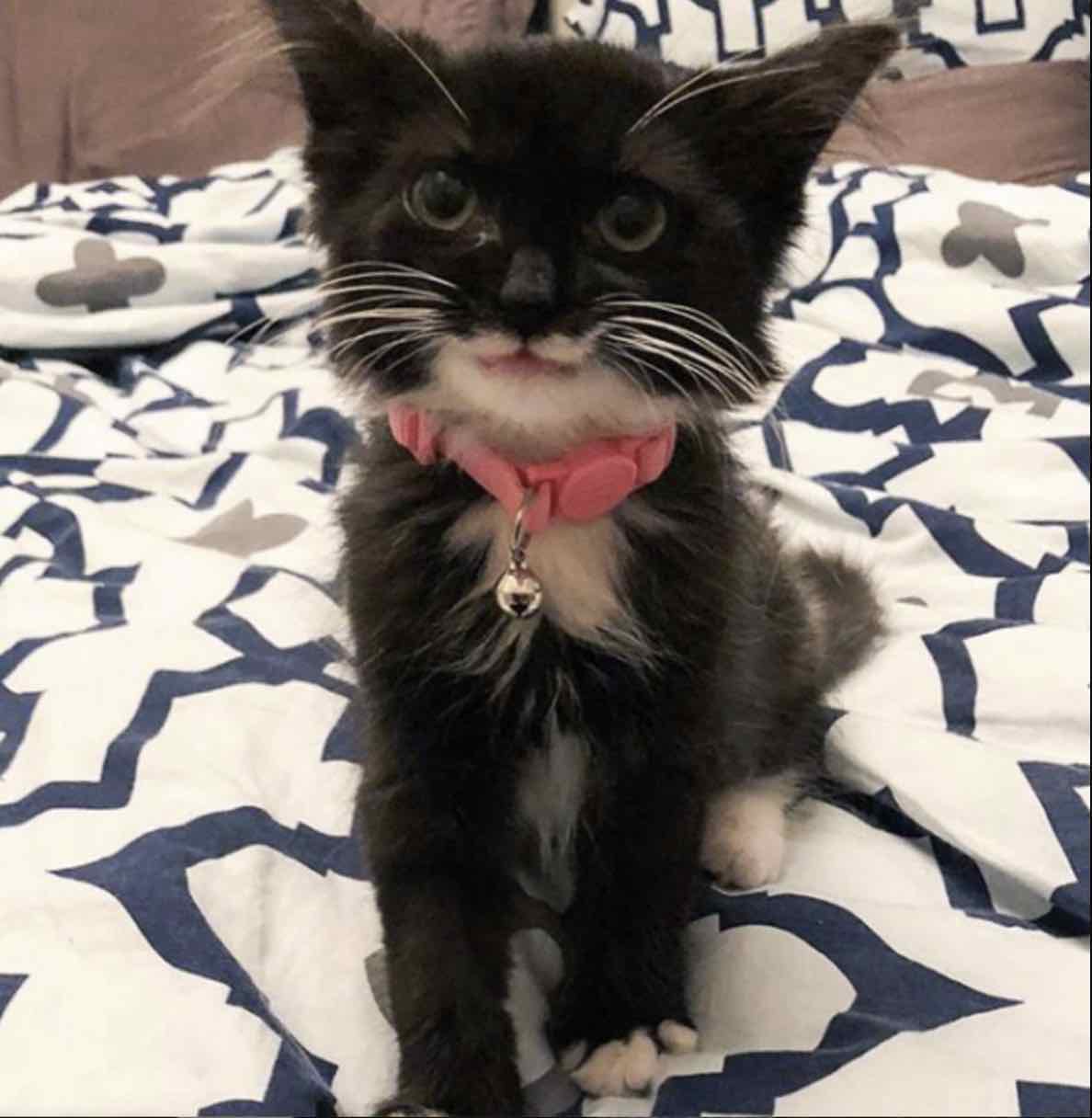 A kitten named Tulip was found as a stray cat on the streets of Ontario, Canada when she was about 2 weeks old.