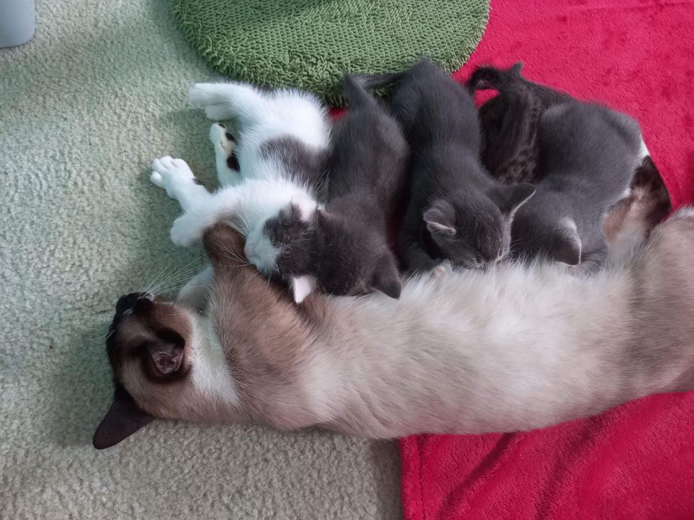 The doting mom came out of her shell and even let her dedicated carers assist with her precious four. “As soon as we offer a pat, she starts purring. She is also very trusting.”