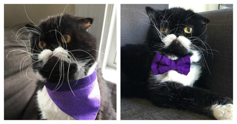 One day, Jen and her partner were browsing on PetFinder. They were looking for a feline companion for their cat Princess Mer. Suddenly they came across a kitty with the craziest-looking whiskers along with a perfectly shaped mustache. The cat dad insisted that they immediately drive to visit the kitty, which was three hours away at a no -kill rescue.