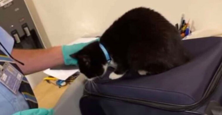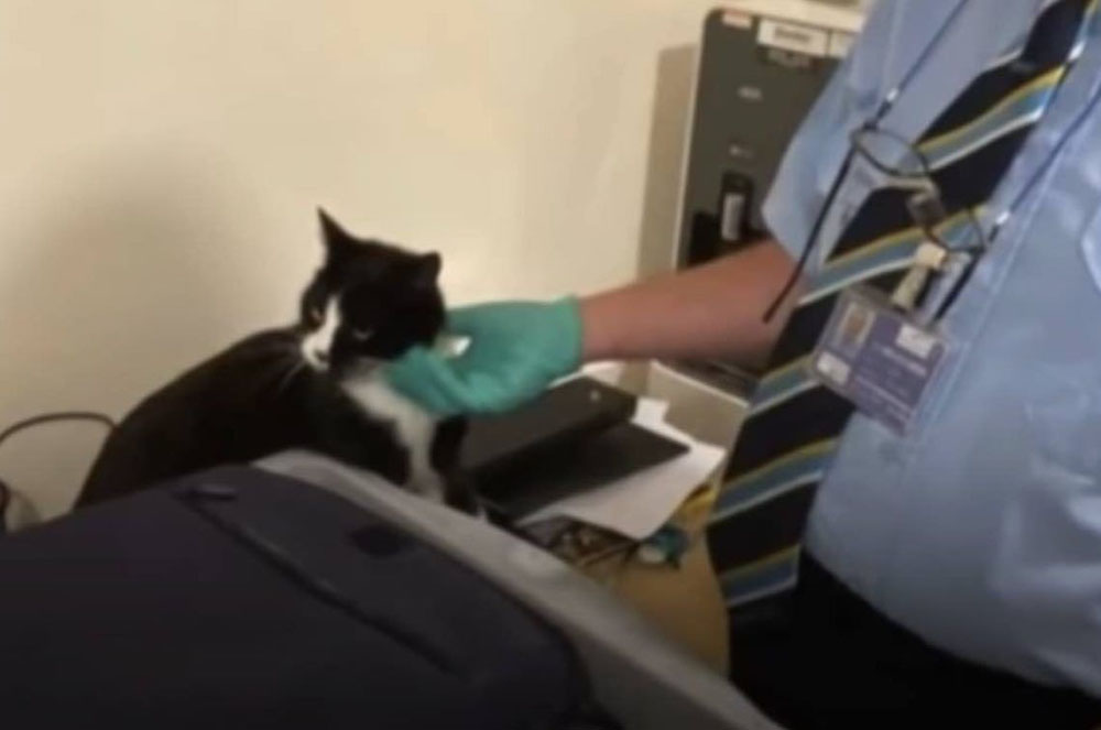 Staff at the airport had spotted a kitty outline when the bag went through one of their security scanners.