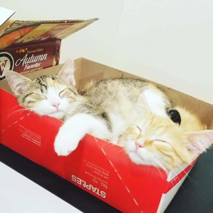 The kittens, who are named Credit and Debit, were fostered by a transportation company in Ohio as a way to keep their employees in high spirits. One employee was so delighted with the cats that they shared a video of the cats on Reddit. It didn’t take long before Credit and Debit’s box video went viral so the employees made an Instagram account just for them.