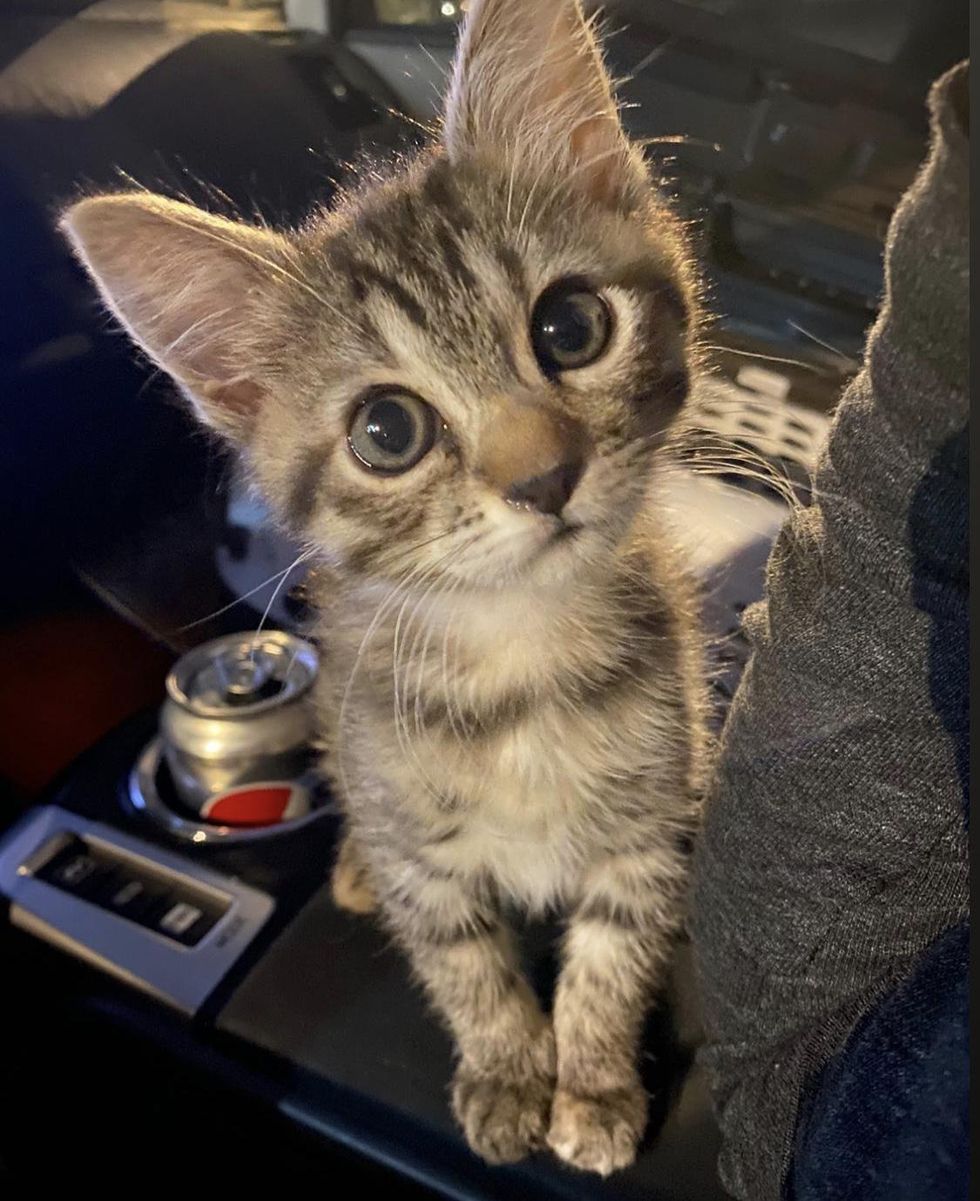 “She is very feisty and playful, but will pause her playtime to come cuddle up and lick my nose in an aggressively affectionate way. She is always moving, playing and wrestling her kitten friends. She went through an ankle-attacking phase — pure spice!”