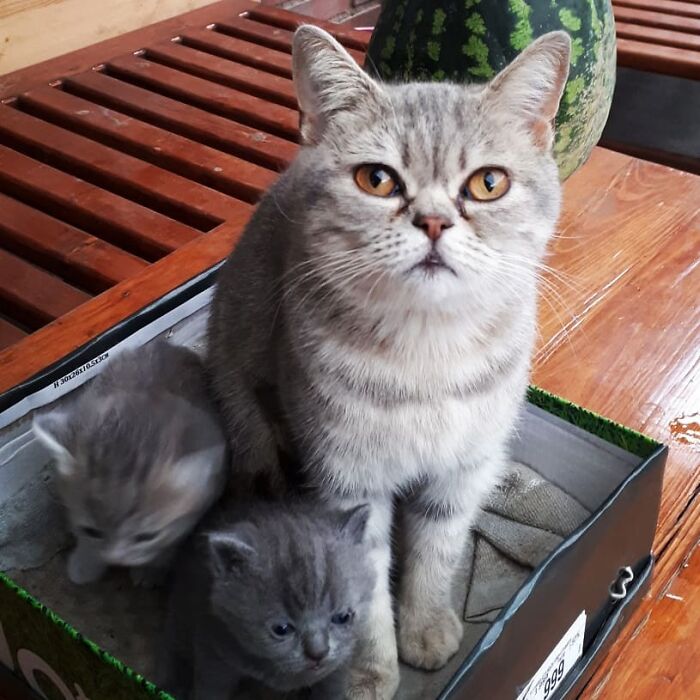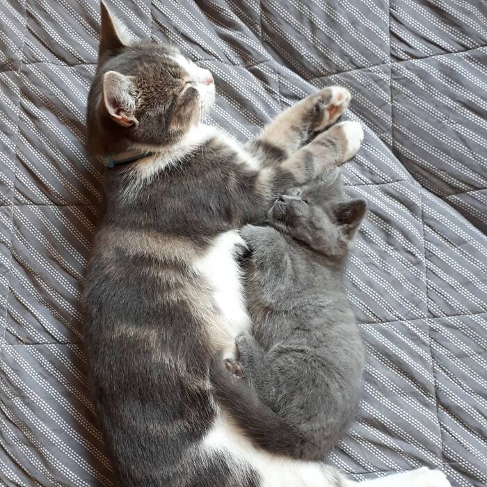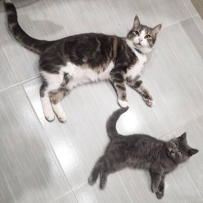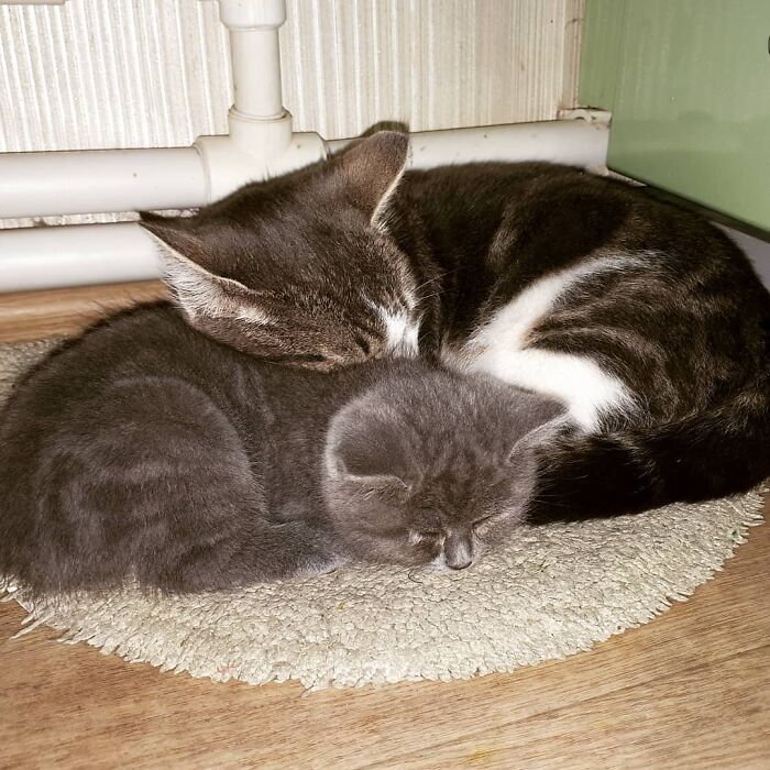 As for Krasavchik, which means handsome in Russian, he also has an interesting story of why he’s living with Natalya’s family. “Handsome was our neighbors’ cat, he came to visit us. When he noticed Fedya, he began to look after him, and we realized that our kitten really needed him. We have good neighbors, they allowed Handsome to live with us. This is how this little touching cat family was created!”