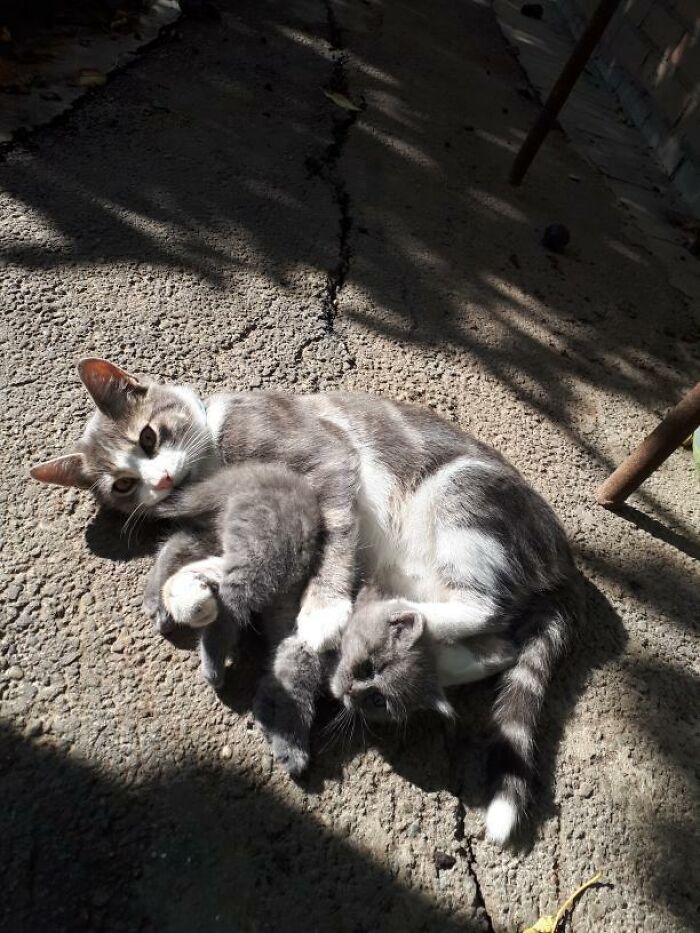 Here’s Lisa, who was a stray that ended up living in Natalya’s backyard. Lisa gave birth to Fedya and another cat