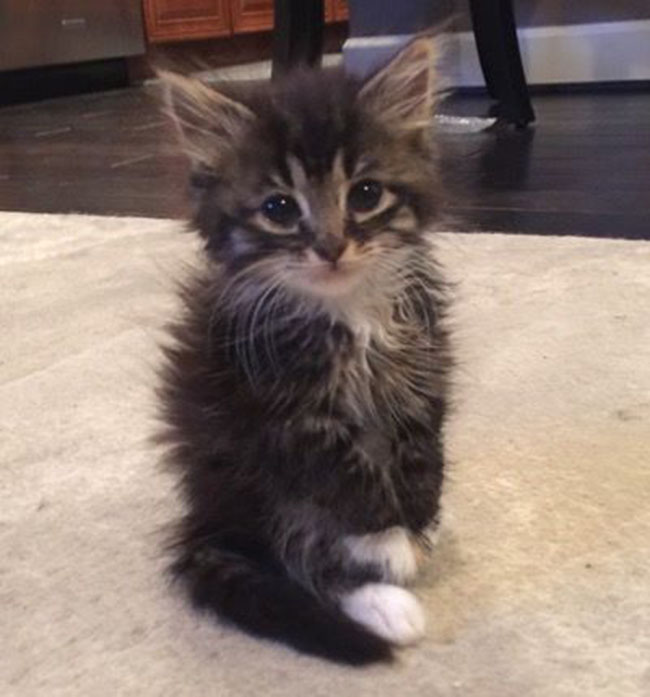 Little Roo was born without elbows, but that doesn’t slow down this special little kitten. She walks like a little kangaroo and has a meow will melt your heart.