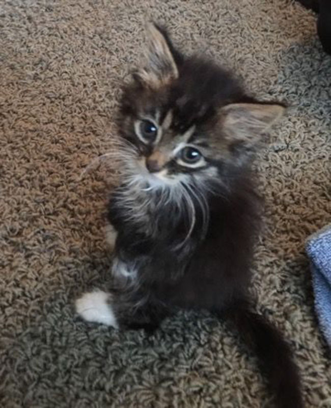 “She is starting to run a bit; albeit very awkwardly. She is gaining weight steadily and we will be working with NoVa Cat Clinic to develop physical therapy treatments to help her as she grows.”