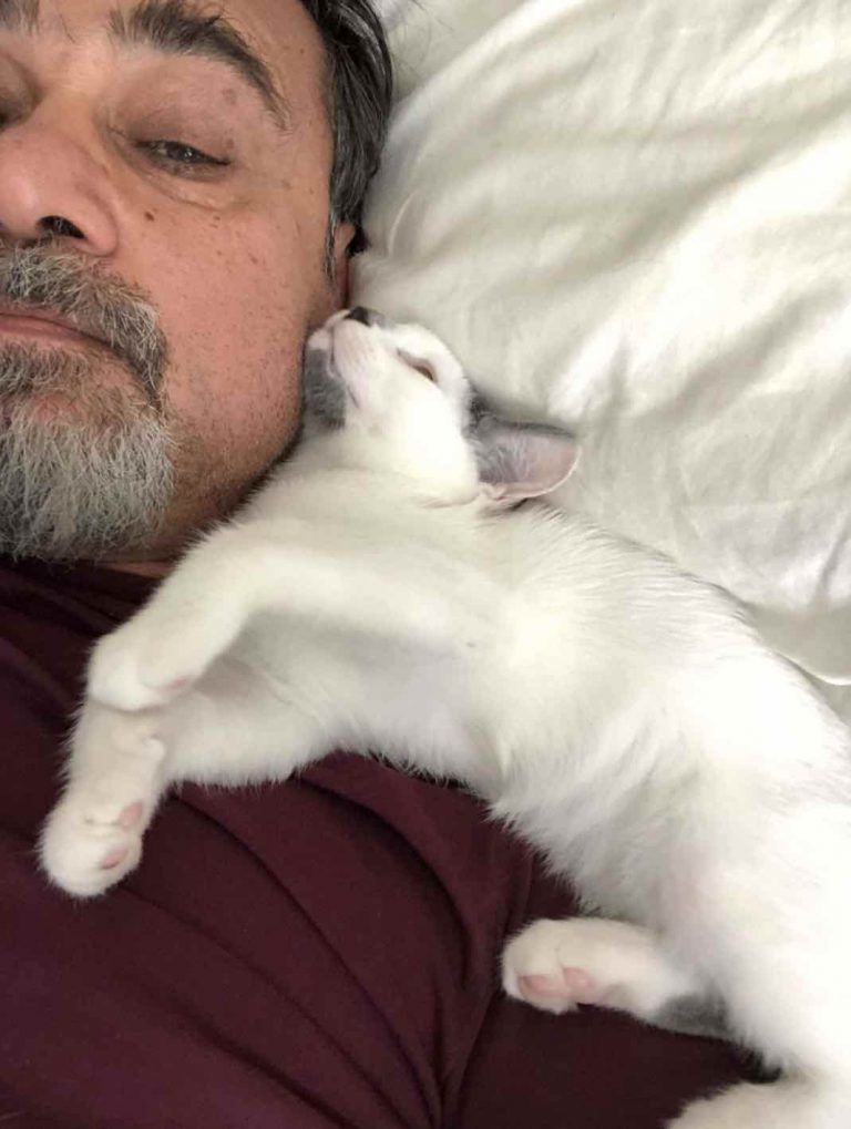 Hira was delighted because usually her dad had a bad impression of cats but obviously if one was around for long enough it gave him the chance to see just how amazing they are.
