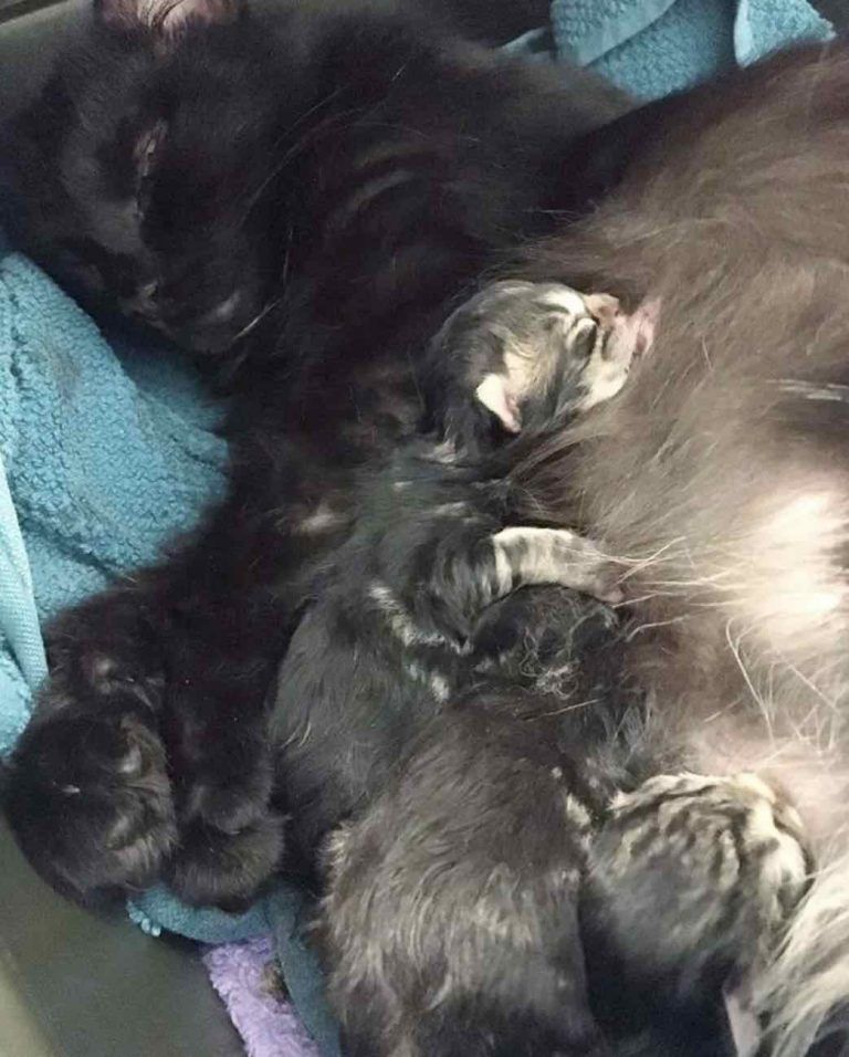 Her new owners decided to take her in just as she was about to give birth to her litter of kittens.